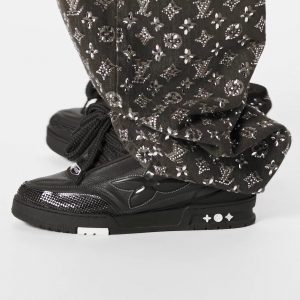 First seen at Louis Vuitton’s Fall-Winter 2022 show, the LV Skate sneaker is revisited this season in grained calf leather with a new oversized Monogram Flower motif on the side. Inspired by Nineties’ skate shoes, this design is characterized by its padded collar and tongue. Technical double laces and a bicolor rubber outsole complete this model.