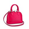 The Alma BB handbag traces its pedigree to the Art Deco original, introduced in 1934. This model is crafted from emblematic Epi leather, a deep-dyed, textured cowhide exclusive to the House. Its unmistakable shape and signature details – padlock, hand-stitched Toron handles, key bell – make this compact bag a timeless classic. Fitted with a removable strap for cross-body wear.