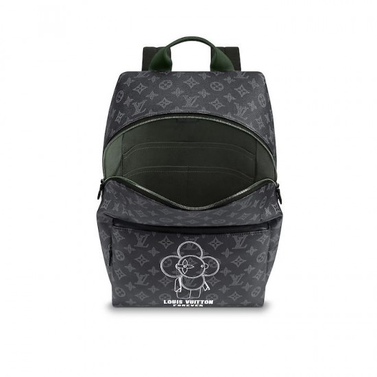 This Apollo backpack is decorated with the Louis Vuitton mascot Vivienne painted by Kim Jones. Made of Monogram Eclipse canvas, embellished with leather and fabric inlays, it is a stylish urban handbag.37.0 x 40.0 x 20.0 cm(length x height x width)