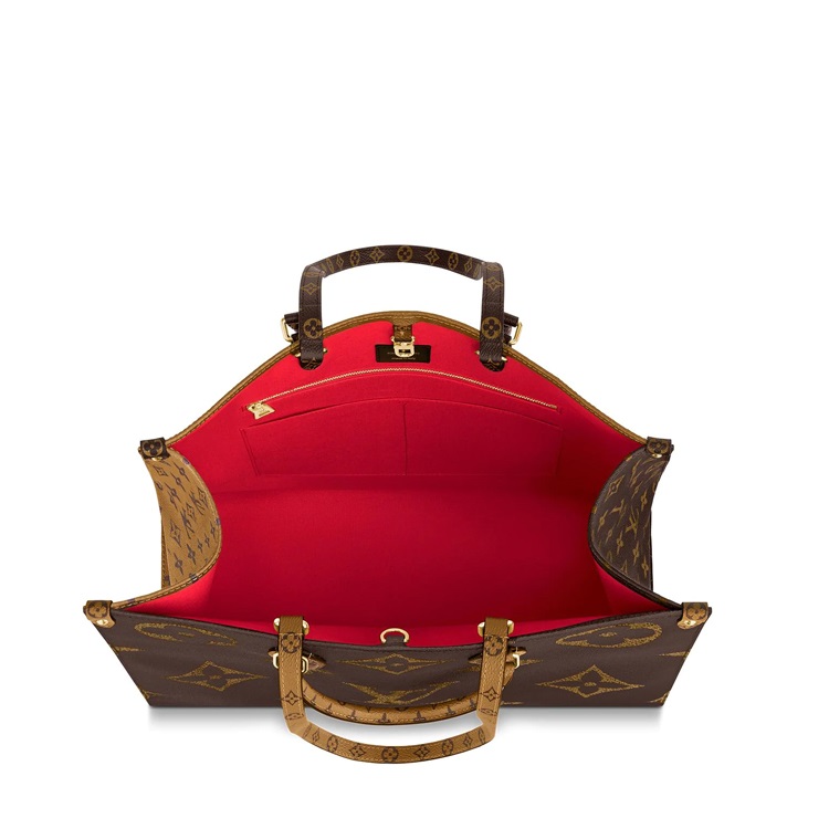 Fashioned from Monogram Giant canvas, the Onthego tote bag is as striking as it is practical. A Monogram Reverse pattern on the sides and handles creates a stylish contrast in color and scale. With its generous capacity, removable shoulder straps, and iconic Toron top handles, this versatile GM model is an ideal bag for everyday wear.