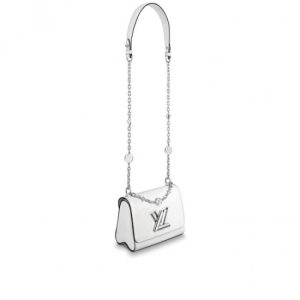 This Louis Vuitton’s iconic Twist belongs to the Twist Flower Jewels special edition. Crafted from White grained Epi leather, it features a sparkling, crystal-embellished chain adorned with Monogram Flowers, which playfully rotate inside their circle. This chic flap bag is secured with the House’s transforming Louis Vuitton Twist lock.